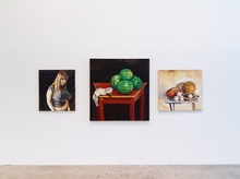 The artist’s subjects are uncompromisingly contemporary: everyday objects either pulled from his laptop or painted from life; models sourced through Craigslist or clothing and paraphernalia arranged on a folding table in his studio. In this exhibition, he presents Vanitas paintings, Card Houses, Flags, and Deli Flowers. He will also show new “Palette” paintings - abstract works that frequently take him months to complete, his “contribution to the abstract canon of New York City.”